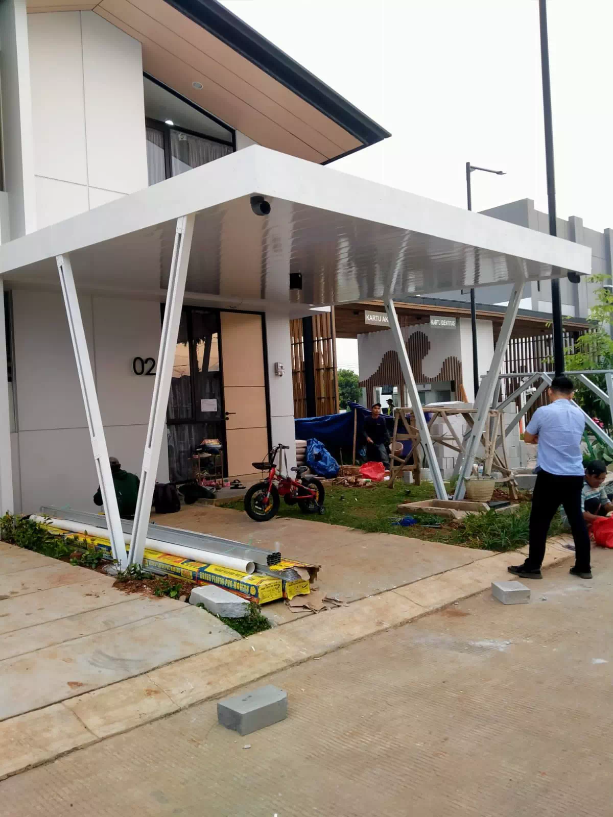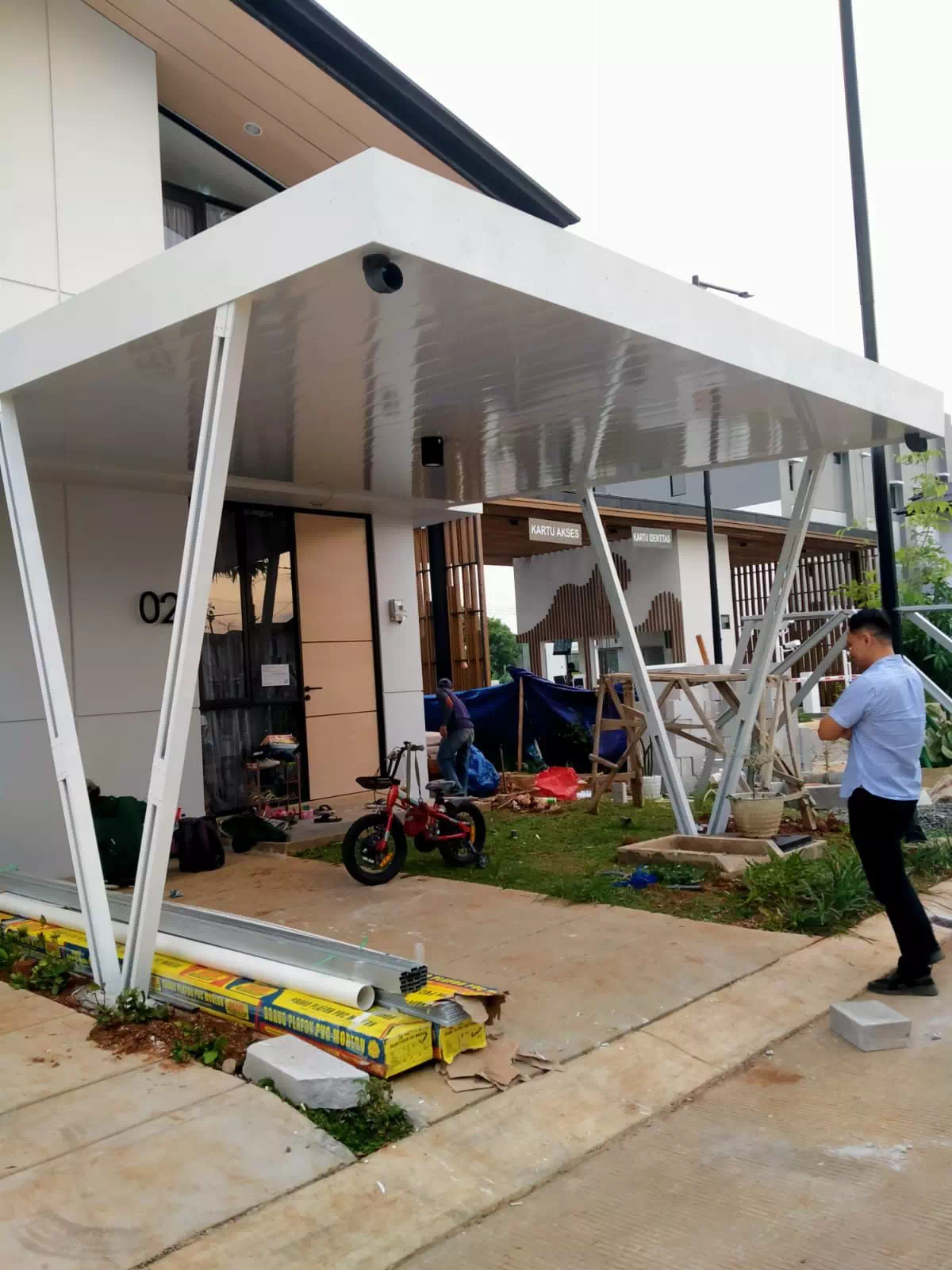 Pemasangan kanopi yang kuat dan stylish untuk melindungi area luar rumah Anda.